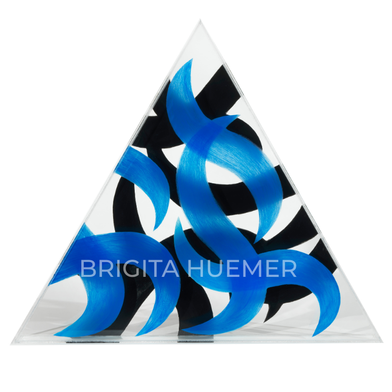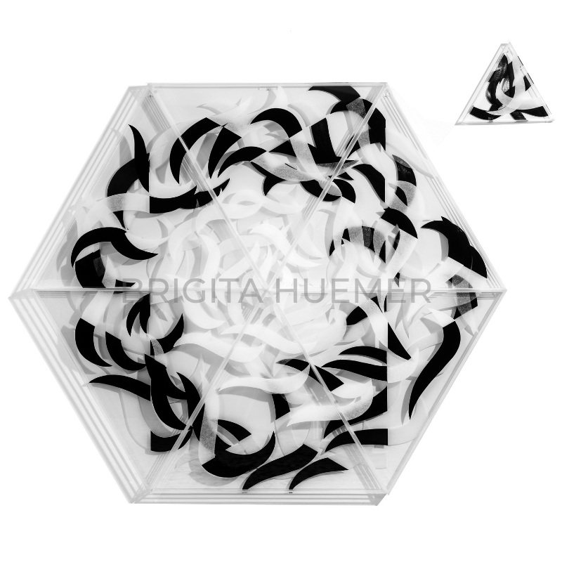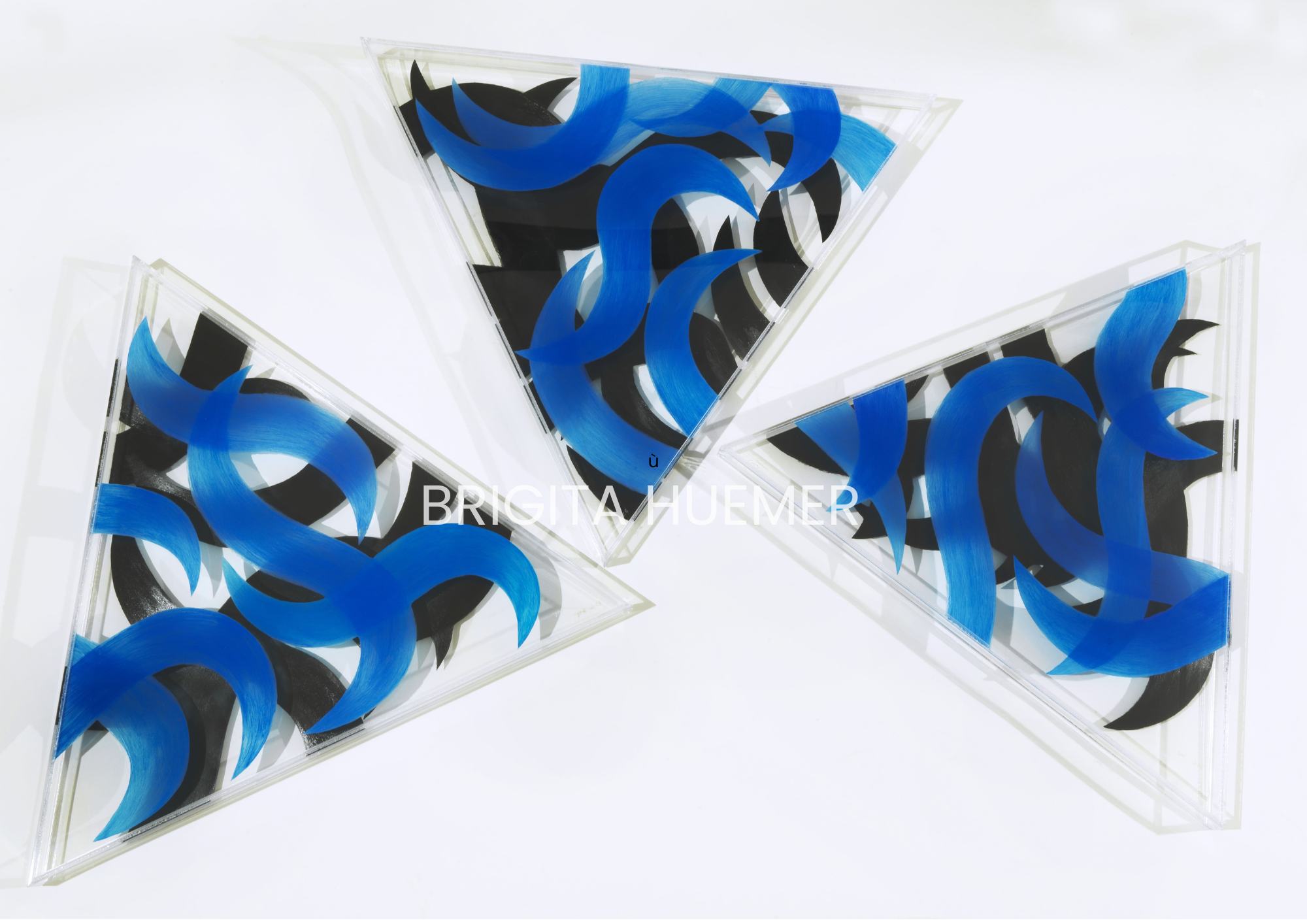acrylic and paper collage on 3 layers of plexiglass cm 120x160 triangle cm 30x30