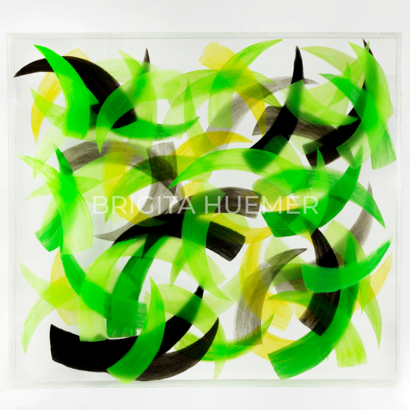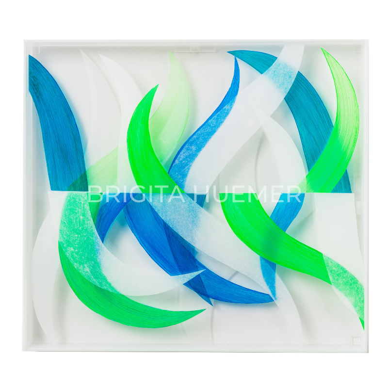 acrylic paint and paper collage on 4 layers of plexiglass cm 45x40