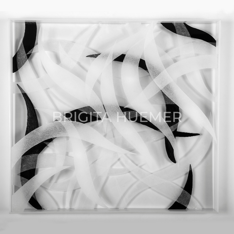 acrylic paint and silver foil paper collage on 3 layers of plexiglass cm 48x43