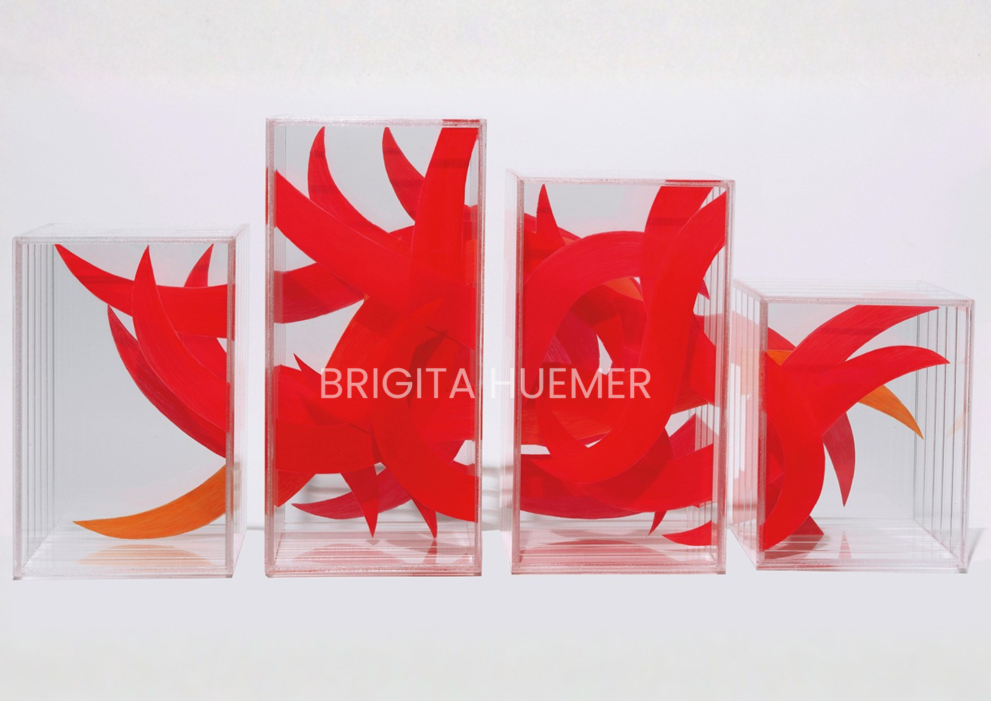 4 sculpture boxes acrylic paint on 6 layers of plexiglass cm 26x14x13; 30x15x13; 22x14x13; 18x14x13